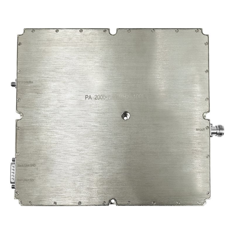 The high-power 100W 2000-7000MHz amplifier is an advanced, wide-bandwidth security device designed to counter illegal low-altitude drones. Manufactured in Guangdong, China, this power amplifier features 5dBm input power and a broad frequency range of 2000MHz to 7000MHz, making it ideal for various applications including drone countermeasures systems, wireless communications, radar systems, and testing equipment.